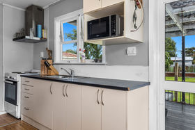 This solid 1960s weatherboard home sits proudly on an impressive 809sqm (approx.) flat, fully fenced section - offering space, privacy, and plenty of potential. Inside, the open-plan living room is light and welcoming, complemented by an upgraded, highly functional kitchen. The living area flows seamlessly to a north-facing, covered rear patio - perfect for year-round entertaining or relaxed afternoons in the sun. All three bedrooms are well-proportioned, each with built-in wardrobes, and feature beautiful native timber flooring that adds warmth and character throughout the home. The bathroom includes a corner shower, toilet, and vanity, while the separate laundry is conveniently located off the front porch. Comfort is assured with a heat pump, plus an additional space-saving heater in the hallway. To the rear of the section, you'll find a single garage and ample off-street parking for extra vehicles. An ideal first home or a smart investment opportunity - especially with a settled tenant already in place and happy to stay. This one is well worth your consideration, contact Pat Jarvey for viewing times as there are no upcoming open homes.