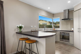The kitchen is modern and well-appointed, offering good bench space, storage, and quality appliances. Its layout connects easily with the dining and living areas, ensuring a practical flow across the home.